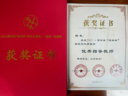 PART . 04弦音铮铮,传承国乐之美 琵琶专业的学员们以悠扬乐声传承国乐魅力,载誉而归。 在2025 国乐行民族器乐展演比赛中,学员们表现出色,斩获 3 金 3 银 2 铜。8 月,学员们远赴内蒙呼和浩特,参加第四届 “昭君杯” 国乐艺术琵琶专业比赛。孩子们不负众望,拿下 1 金 2 银 3 铜的好成绩。 专业教师杨帆凭借精湛的教学水平,在两项赛事中均被评为 “优秀指导教师奖”。此外,郑小龙老师荣获2025 年度中国民族管弦乐学会社会艺术水平考级陕西考区优秀指导教师奖,为我宫国乐教学添上浓墨重彩的一笔。