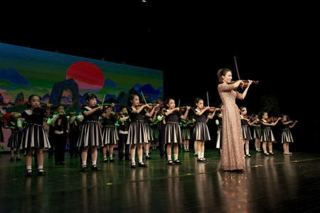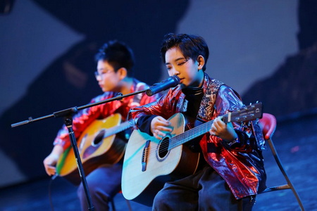 晚会节目精彩纷呈、形式多元,尽显艺术教育丰硕成果。开场舞澎湃激昂,瞬间点燃现场氛围;合唱《小美满》以清澈童声传递温暖,拉丁舞《新年快乐》洋溢青春活力;吉他弹唱《蓝莲花》诉说追梦初心,朗诵《莽撞人》铿锵弘扬忠勇精神;《鼓奏花香》将电子琴与架子鼓创新融合,中西乐器碰撞别样火花。钢琴、琵琶、小提琴等器乐专业演奏环节,学员们以娴熟技艺征服全场,彰显了青少年宫扎实的教学水准。最终,大合唱《有我》与群舞《成长在祖国的怀抱里》将晚会推向高潮,深情抒发 “请党放心,强国有我” 的赤子情怀。