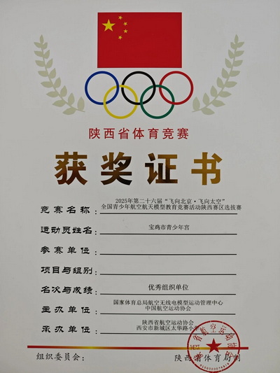 7月5日至6日,第二十六届“飞向北京•飞向太空”全国青少年航空航天模型教育竞赛陕西赛区选拔赛在西安市太华路小学激情开赛。在全省142支队伍、1302名选手的激烈角逐中,宝鸡市青少年宫航模专业凭借扎实功底斩获佳绩,获评“优秀组织单位”。 1、备赛比赛 备赛期间,学员们在教练指导下开展高强度集训,系统提升模型组装、飞行技巧及实战能力。赛场上,队员们沉着应对5个大项比拼,展现出过硬的专业素养。 备 赛 照 片