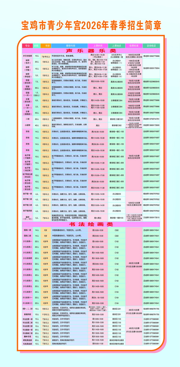 春阳启序,成长不待 —— 宝鸡市青少年宫 2026 春季教学本周末开课! |