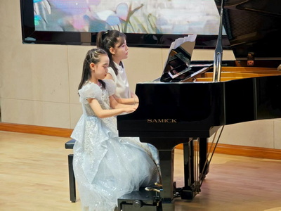 音乐会上,学员们以独奏、合奏、师生联动、跨专业融合等形式演绎了多首经典曲目,从明快优美的意大利民间曲《啊!我的太阳》到充满童趣的《欢乐的牧童》,指尖流淌的旋律时而激昂澎湃,时而温柔细腻,充分展现了学员们扎实的专业功底和对音乐的深刻理解。现场观众沉浸在美妙的琴声中,不时报以热烈掌声。
