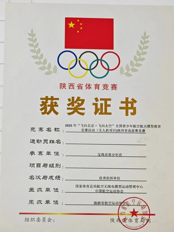 近年来,航模专业学员多次在省赛、国赛中连战连捷。其中,2025年“飞向北京・飞向太空”全国青少年航空航天模型教育竞赛活动(无人机项目)总决赛中4人获一等奖、4人获二等奖、1人获三等奖,2名学员成功晋级。宝鸡市青少年宫获评“优秀组织单位”。在陕西省青少年航空航天模型教育竞赛宝鸡分站赛中累计获得一等奖10个、二等奖8个、三等奖11个。宝鸡市青少年宫再次获评“优秀组织单位”。 赛事现场