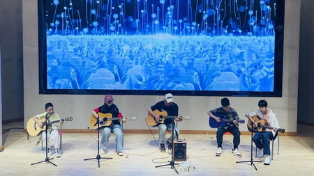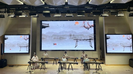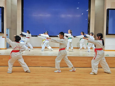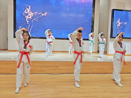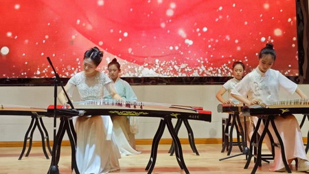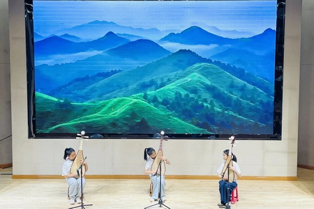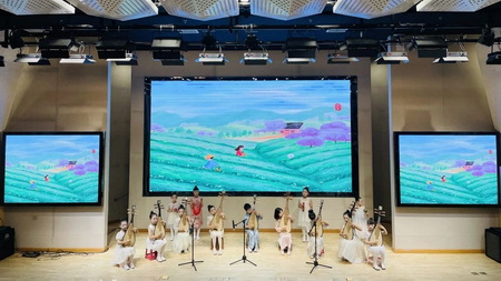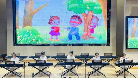 黑白琴键起落,《土耳其进行曲》与《浏阳河》的激昂与婉转交织,带观众入意境。童声合唱《逐梦小树苗》如破土新芽,充满希望。跆拳道师徒飞踢,招式刚劲。无人机小分队登场,化身“节日快递员”,精准投递掀欢呼。古筝奏响《中国字 中国人》《盛世国乐》,吉他弹唱《蓝莲花》,展现少先队员才艺与科技风采。