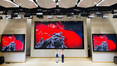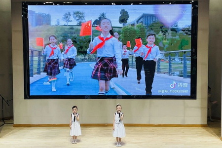 架子鼓开场掀起音浪,小鼓手们敲击点燃热情。琵琶音符如江南欢歌,街舞萌娃踏节奏登场,燃爆全场。朗诵《英雄》传递信仰力量,二胡《赛马》再次点燃热情,少先队员们用才艺展现风采,传承奋斗精神。
