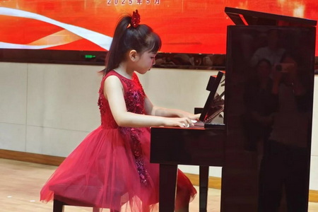 武术少年潇洒登场,拳风生威,尽显中华武魂。爵士舞少女带来《甜心宝贝》,炫酷舞步释放青春活力。独唱《香格里拉》歌声空灵,勾勒雪域画卷。电子琴演奏《你笑起来真好看》传递甜蜜,歌曲串烧展现多元风格。小提琴奏响《我和我的祖国》,悠扬琴声诉说爱国情怀,感染全场。 HAPPY CHILDREN'S DAY