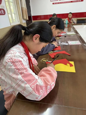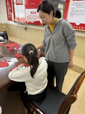 剪纸课上,孩子们对寿桃的象征意义充满了好奇。剪纸专业牛老师结合剪纸的艺术形式,教孩子们用左右对称的方法设计和剪裁桃子和寿字。孩子们小心翼翼地拿着剪刀,沿着线条剪裁,生怕剪坏了。当一个个栩栩如生的桃子和寿字呈现在眼前时,孩子们的脸上露出了自豪的笑容。这不仅是一堂剪纸课,更是一堂传承传统文化的课,让孩子们在动手实践中感受到了传统文化的魅力。
