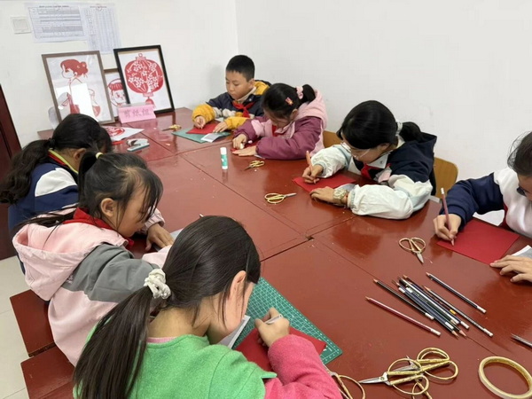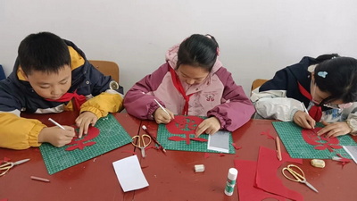 剪纸课堂上,孩子们以“平安是福”为主题,跟随者剪纸专业牛老师学习了绘制苹果与福字组合图案的技巧。从内部剪裁向外围展开,大家逐步完成了象征平安幸福的剪纸作品。在动手实践中,孩子们对苹果代表的“平安”与福字寓意的“幸福”有了更深的理解,体会到剪纸艺术中蕴含的情感表达与文化内涵。