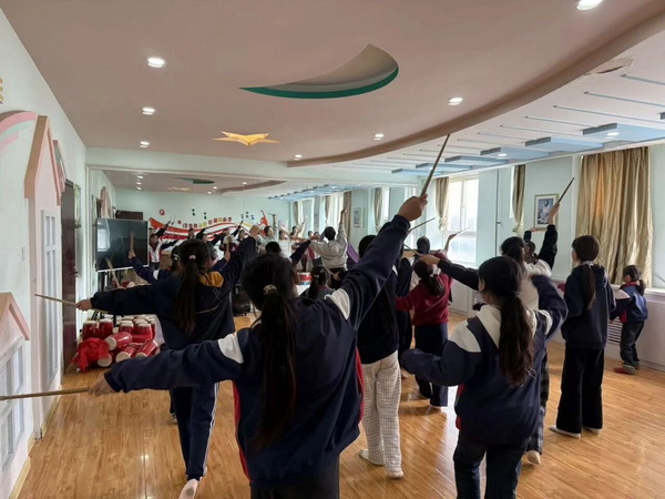 新增的舞蹈课程,以陕北秧歌腰鼓为主题。孩子们在舞蹈专业赵老师的指导下学习了腰鼓的基本元素动作和步伐。在鼓点的带动下,大家尝试用身体的协调性展现陕北文化的独特韵味。课程不仅让孩子们掌握了舞蹈技巧,也让他们对陕北地区的文化有了初步的认识与了解。