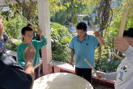 锣鼓课堂也同样精彩。孙教师围绕《鼓舞中国》1-6段落展开教学,不仅详细讲解每一段落的演奏技法,还结合实例科普乐理知识,帮助学生理解节奏与旋律的融合逻辑。在实操环节,学生们手持鼓槌,按照老师的指导练习演奏动作,巩固基本功手法。经过一节课的学习,学生们对锣鼓演奏的节奏感和表现力也有了更深层次的把握,铿锵的鼓点在校园回荡,展现出蓬勃的朝气。 |