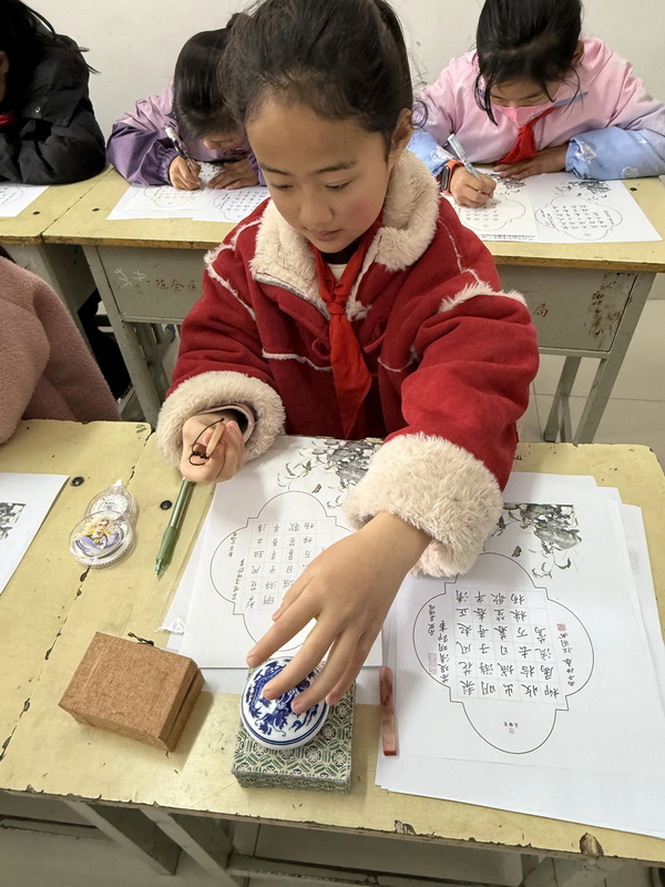 书法课堂以'梨花风起正清明'为主题,为孩子们带来了一堂融合古诗赏析与硬笔书法创作的沉浸式课堂。从握笔姿势到横竖撇捺,从古诗赏析到作品创作,孩子们一笔一画认真书写。当落款、钤印完成,一幅幅工整清秀的硬笔作品跃然纸上——这不仅是一堂书法课,更是一次传统文化的浸润,让孩子们更清晰深刻的了解到社会主义核心价值观的内涵意义,也让孩子们在笔墨间读懂了清明的人文情怀,感受到文字的温度与力量。