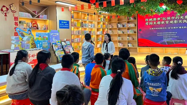 团防城港市委联合团防城区委、市青少年活动中心、防城区民政局、防城区新华书店有限公司共同举办“红领巾的光影记忆”爱国主义主题教育实践活动。活动在《鸡毛信》观影中拉开序幕。伴随着一幕幕光影画面,队员们时而为海娃的险境屏息凝神,时而因他的胜利欢呼鼓掌。