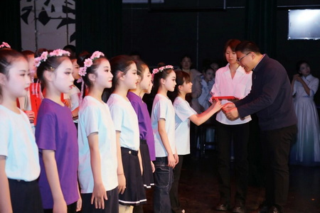 晚会现场还为 2025 年六一期间登上国家大剧院的 30 名优秀学员颁发了荣誉证书。这些学员曾赴国家大剧院参加 “我和祖国一起成长” 六一主题演出活动,中国宋庆龄基金会、中国福利会、国家大剧院、北京市教育委员会联合颁发证书表彰奖励他们在此次活动中的优异表现,这也成为市青少年宫深耕艺术教育、培育后备人才的生动见证。团市委四级调研员王剑、市文旅局副局长段军林、团市委副书记刘汉朋为载誉归来的孩子们现场颁奖,勉励他们珍惜荣誉、再接再厉,将此次高光时刻化为艺术道路上持续前行的动力。