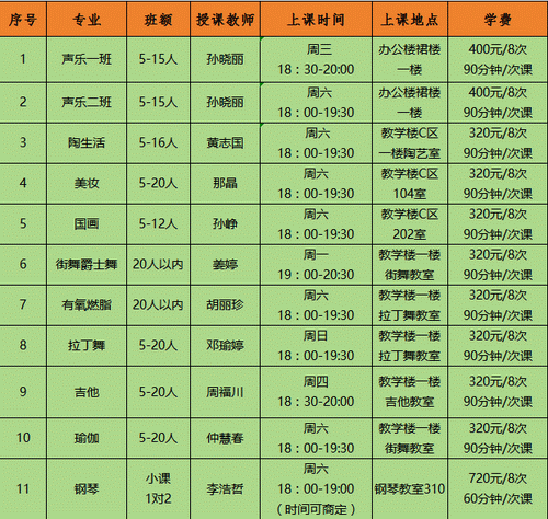 报名时间:3 月 29 日 —— 4 月 19 日 我们带着六期的温暖积淀,结合青年成长需求焕新课程,共开设 11 门特色课,让每一个心怀热爱的宝鸡青年,都能在夜晚的课堂里,遇见更好的自己。本期夜校开设有氧燃脂、钢琴、声乐、陶生活、国画、美妆、街舞爵士舞等 10 大专业 11 个班级同步开课,动静相宜,适配不同兴趣喜好。 教 学 安 排