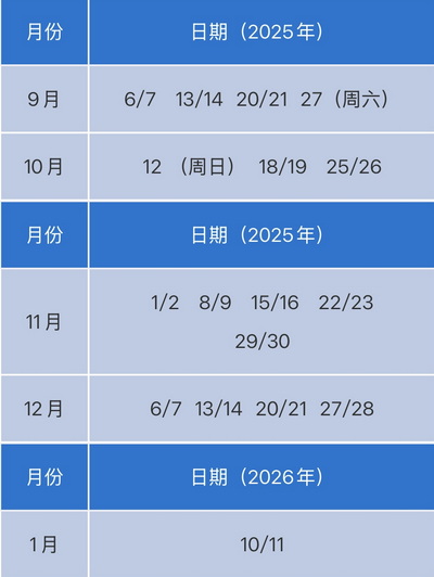 秋季班培训时间为:2025年9月6日至2026年1月11日,共计16周课程