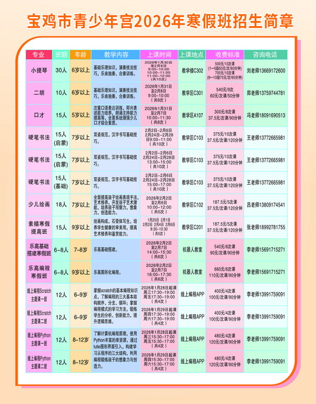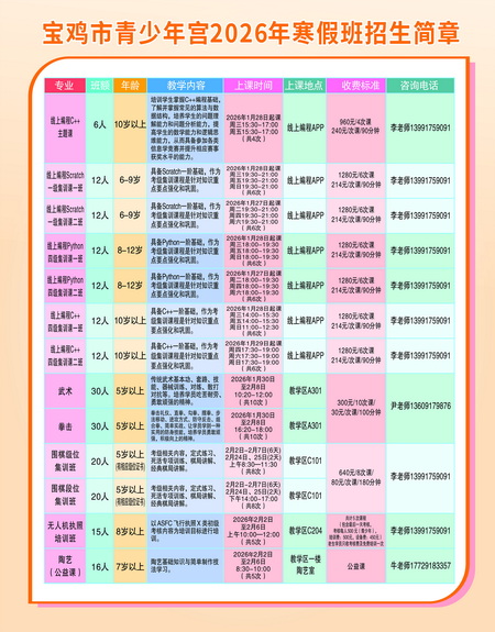 宝鸡市青少年宫2026年寒假班开始报名啦~ |
