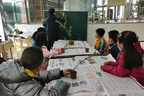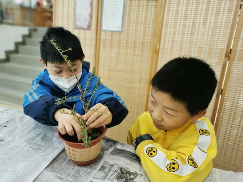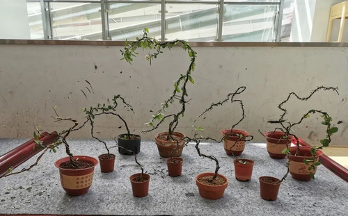 盆景艺术被称为是有生命的艺术,它的核心也是线条的艺术,近几年,我们书法专业的学生,从盆景的苗培,扦插到制作,循序渐进的培养学生热爱自然的情怀,能够发现美和创造美,从盆景的线条欣赏创作,过渡到书法线条的把控能力,让孩子通过热爱传统文化,进而能真正的具备文化自信和自豪感! |