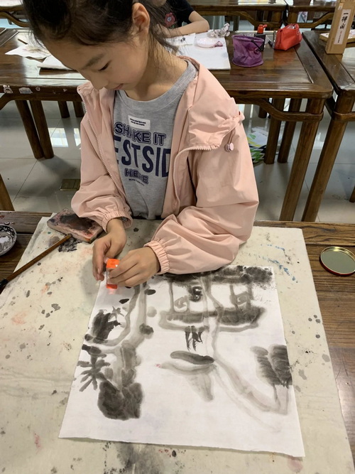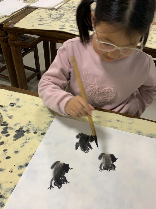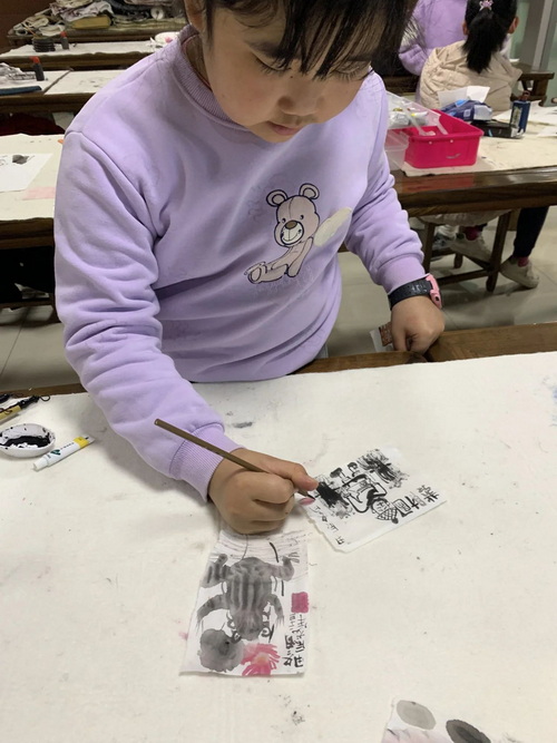 市青少年宫国画课堂教学风格生动有趣,课堂氛围轻松自然,能激发孩子的兴趣。课堂教授孩子们掌握中国画的基本用笔、用墨及用水的方法,表现孩子们的日常生活所见,例如身边熟悉的小动物、植物、美景等,从学生兴趣出发,强调其在生活中自身的体验感受,将教育目标细化到可操作可体验可评述的具体措施,促进美术活动的发展。