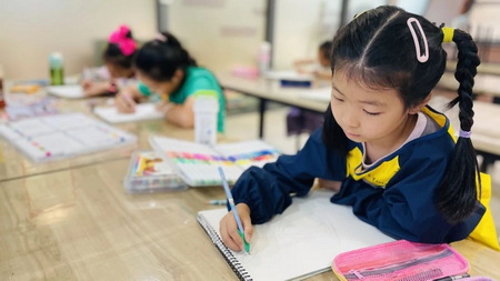 硬笔在方格纸上书写工整与认真,画笔在画纸上涂抹创意与想象,孩子们在横竖线条与缤纷色彩中,收获书写和绘画的成长乐趣。