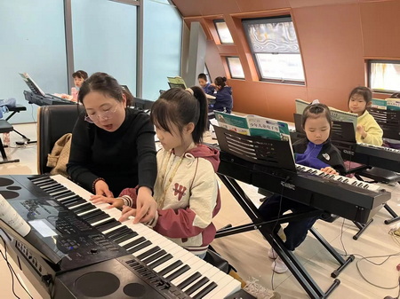 声乐课堂传来清亮的练唱声,孩子们跟着节奏打拍子;钢琴与电子琴前,学员的手指间流淌出或经典或现代的旋律;二胡的醇厚与古筝的婉转交织在一起,勾勒出一幅流动的东方音画。 舞蹈类课堂