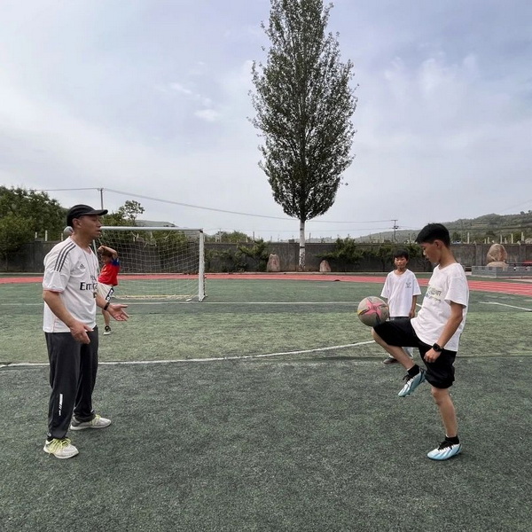 锣鼓课堂上,学生们变身"人体节拍器",有人敲出"闷雷滚滚",有人敲出"小鸡啄米",鼓槌在手中化身魔法棒,发出不同节奏的声音,鼓槌在空中画出残影,这哪里是课堂,分明是专属于我们的热血打击乐狂欢派对! 足 球 课 堂