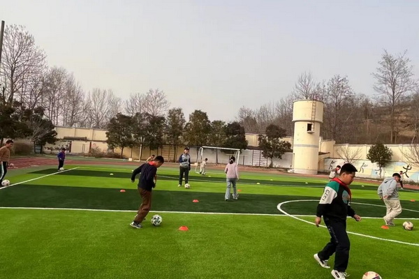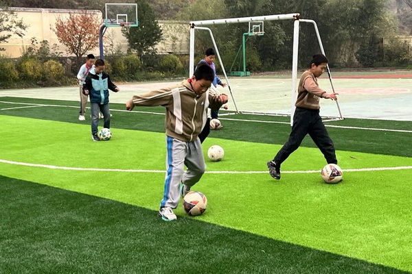 剪纸课上,孩子们沉浸在传统文化的海洋中。老师首先介绍了螃蟹在传统文化中的吉祥寓意——“富甲天下、八方来财”,让孩子们对这一传统符号有了深入的理解。随后,孩子们利用阳刻剪纸“线线相连”的特点,独立设计并剪出了一个个生动的阳刻螃蟹图样。他们熟练运用剪刀,确保线条流畅、连接不断,还尝试为蟹壳部分添加简单的传统纹样进行装饰。在剪纸的过程中,孩子们不仅锻炼了动手能力,更传承了中华优秀传统文化,让古老的技艺在他们手中焕发出新的生机。 足球课 绿茵逐梦,展现活力之美