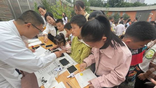 本次活动共有五项内容,中药香包制作向家长和学员介绍中药香包的历史和作用,指导孩子们选择自己感兴趣的中药材和布料,教孩子们如何缝制香包并填充香料;、扎染手绢体验通过讲解扎染的历史和基本技巧,指导孩子们如何在手绢上形成图案,教孩子们如何染色并晾干手绢,冰皮月饼制作环节介绍了月饼的文化背景和制作方法,指导孩子们如何和面、包馅、使用模具制作冰皮月饼,孩子们品尝自己制作的月饼十分开心;活字印刷体验则是讲解了活字印刷的历史和原理,指导孩子们如何排列活字、上墨、印刷,让孩子们亲手制作自己的印刷作品;最后,介绍完投壶游戏的历史和规则后,孩子们分组进行了投壶游戏大比拼。